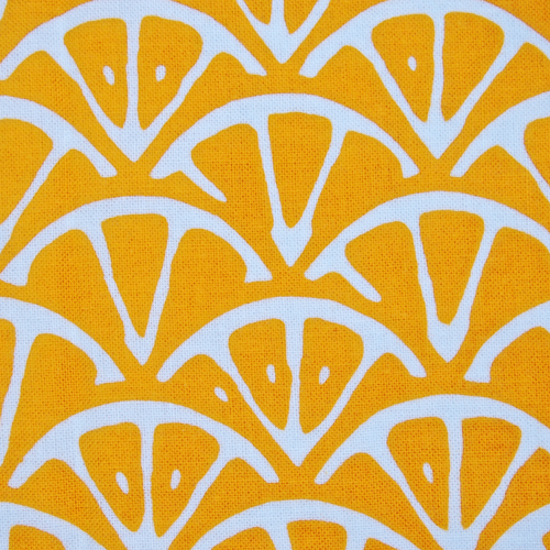 見た目はカットしたみかんの断面が重なっていますが、よーく見ると青海波がベースのデザインです。